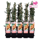 Ein gut bekanntem Strauch, der normalerweise als Schieferpflanze gegen eine Wand verwendet wird. Die kleinen Blätter sind glänzend, dunkelgrün und die Äste tragen lange Stacheln. Dies macht den Pyracantha zu einer Lieblingsbasis für alle Arten von Vögeln.