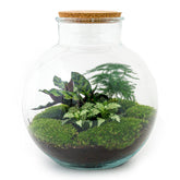 Mit einem Do-It-Yourself-Pflanzterrarium erhalten Sie ein autarkes Biotop, an dem Sie lange Freude haben werden. Nachdem Sie oder die Person, der Sie dieses Terrarium schenken werden, mit dem beiliegenden Fünf-Schritte-Plan Ihr eigenes Mini-Ökosystem zusammengestellt haben, wird das Wasser durch Verdunstung durch die Pflanzen und Moose recycelt.