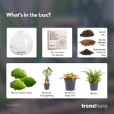 Dieses Terrarium fühlt sich in jedem Interieur zu Hause und wird als Do-It-Yourself-Paket geliefert. Kein grüner Daumen? Keine Bange. Wir erklären Ihnen in 5 Schritten alles, was Sie über Ihr Terrarium wissen müssen, damit Sie Ihr eigenes Terrarium zu Hause oder im Büro innerhalb von 10 Minuten genießen können.