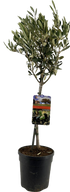 - Die Olea Europaea "auf Stamm" ist ein stilvoller Olivenbaum mit einem charakteristischen holzigen Stamm.