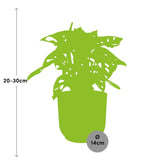 Monstera, eine beliebte Zierpflanze, gedeiht in halbschattigen oder schattigen Bereichen und eignet sich daher ideal für Innenräume. Mit einmal wöchentlichem Gießen erfordert sie weniger Pflege. Die Monstera bevorzugt gut drainierenden Boden, um Staunässe zu vermeiden. Um sie gesund und lebendig zu halten, düngen Sie die Pflanze während der Wachstumsphase alle vier bis sechs Wochen mit einem ausgewogenen Flüssigdünger. Diese schöne Pflanze wird in einem Zierdekor geliefert und ist bereit, jedem Raum einen Hauch von Grün zu verleihen.