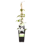 "Clematis Montana Grandiflora" ist ein kleiner blühender, aber auch reich blühender Clematis, der im Frühling eine Fülle weißer, duftender Blumen verleiht. Die Clematis wächst schnell und macht mehr und längere Ranken als die meisten Clematis. Die Kletterpflanze eignet sich perfekt zum Überwachsen einer Pergola, kann aber auch entlang einer Wand, eines Zauns oder eines Racks in Ordnung sein. Er braucht Hilfe beim Klettern, weil er sich nicht daran befasst. Sie können es daher zu einem Draht- oder Netzwerk führen. Ein wunderschönes und auffälliges Merkmal ist, dass er eine Zeitschrift hat, die im Herbst verfärbt. Kalttemperaturen sind kein Problem für die winterharte Kletterpflanze.