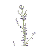 - Im Sommer zeigt die Pflanze zahlreiche lavendelblaue Blüten in langen, aufrechten Rispen über dem Laub.