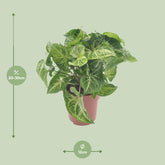 Pfeilspitzenpflanze 'Arrow' wird in einem 12 cm Topf geliefert und ist perfekt, um die Natur in jeden Raum zu bringen.Mit einer aktuellen Höhe von etwa 25 cm verleiht die Pfeilspitzenpflanze 'Arrow' Ihrem Zuhause sofort einen Hauch von Grün.Diese Pflanze gedeiht an einem Ort mit Halbschatten und ist daher eine ideale Wahl für Innenräume mit begrenztem Sonnenlicht.Die Pflege der Pfeilspitzenpflanze 'Arrow' ist ein Kinderspiel, da sie eine pflegeleichte Pflanze ist, die nur minimale Anstrengungen erfordert.Nicht nur hat die Pfeilspitzenpflanze 'Arrow' üppige grüne Blätter, sondern sie hat auch wunderschönes pfeilförmiges Laub, das jedem Raum interessante visuelle Akzente verleiht.